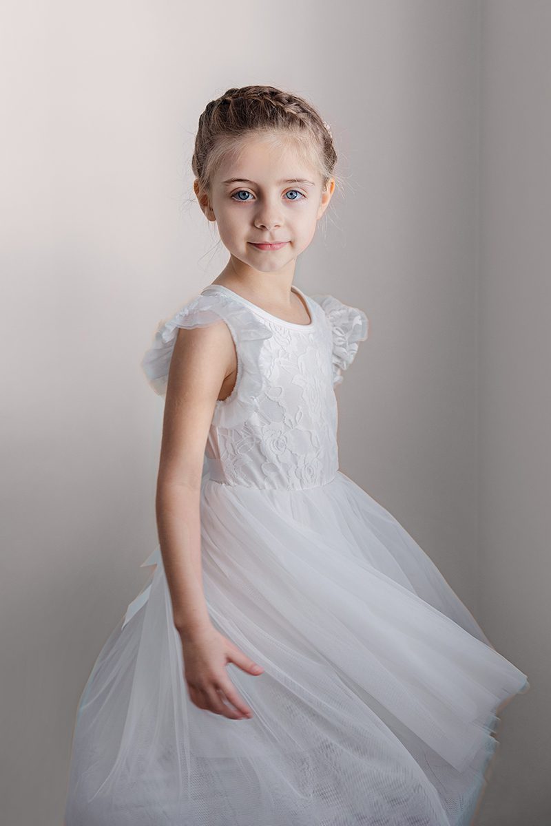 Dresses are great for little girls - just make sure their underwear is neutral. Older girls love something to spin around in. In warmer weather, a sweet summer dress is all they need.